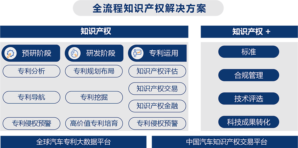 緻力于拓寬汽車行業創新生(shēng)态圈,提高核心能力建設,實現知識産權運營突破。在不斷優化傳統業務的基礎上,進一步拓展知識産權創新業務,構建汽車知識産權全價值鏈服務體系,充分(fēn)發揮知識産權在汽車行業中的創新引領作用,助力産業轉型升級。建設中國汽車知識産權交易中心線上平台,打造集汽車行業知識産權“展示、交易、運營”三位一體的線上全流程交易服務平台,面向市場主體和創新主體提供專利交易、項目交易、成果推介及轉化對接等運營服務,加快(kuài)推動汽車行業知識産權向現實生(shēng)産力轉化;構建汽車專利價值評估模型,成立汽車知識産權團體标準工作組,共同制定具有汽車行業特色的專利價值評估标準,提升汽車行業經濟活力和創新能力;持續探索知識産權金融創新模式,聚焦汽車行業提供知識産權質押融資、知識産權證券化、知識産權保險等金融服務,促進“科(kē)技+産業+金融+知識産權”的有效結合,帶動汽車行業科(kē)技成果轉化與知識産權運營水平整體提升。